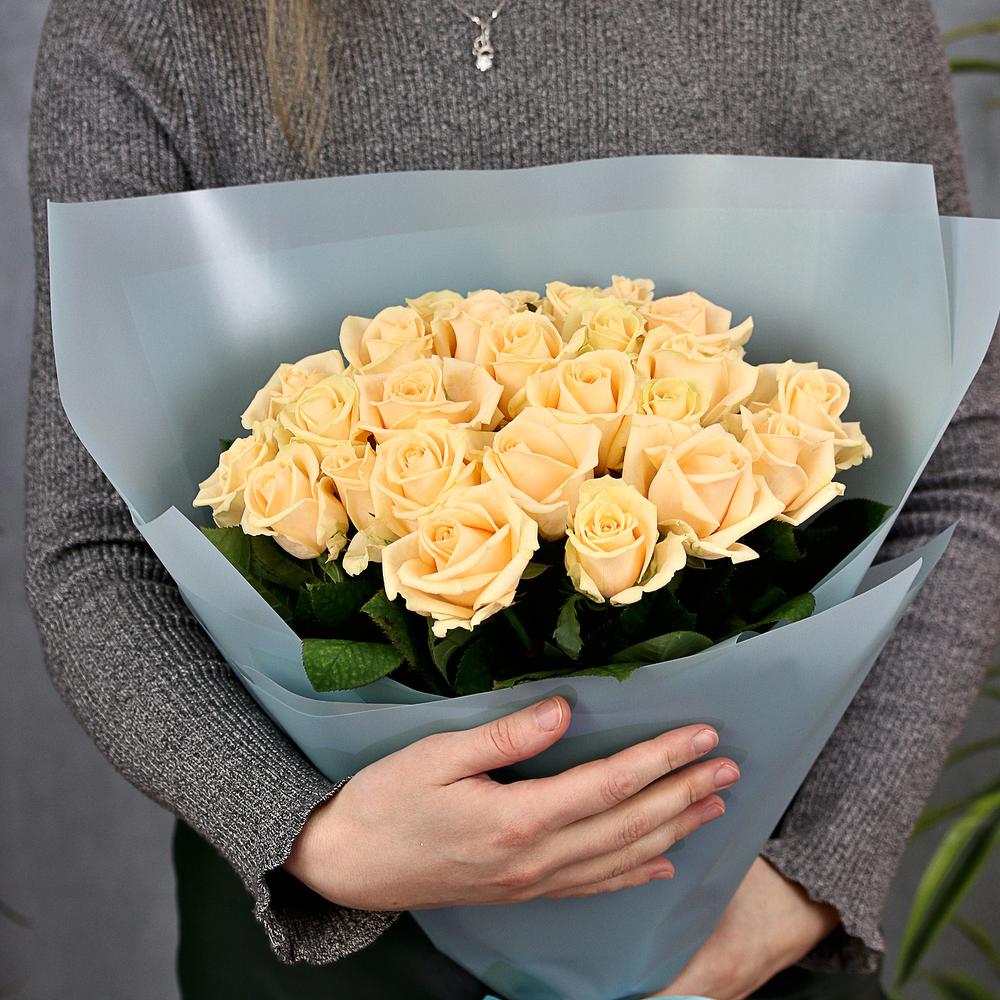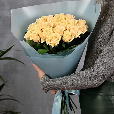 Закажите 25 кремовых роз 50 см с доставкой в Москве и МО.
