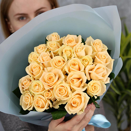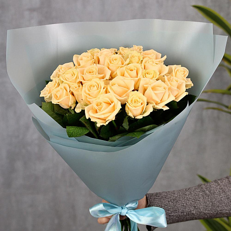 25 кремовых роз 50 см — отличный выбор для подарка! На сайте вы найдете красочные фотографии, которые помогут сделать выбор. Цена букета — 4700 руб.