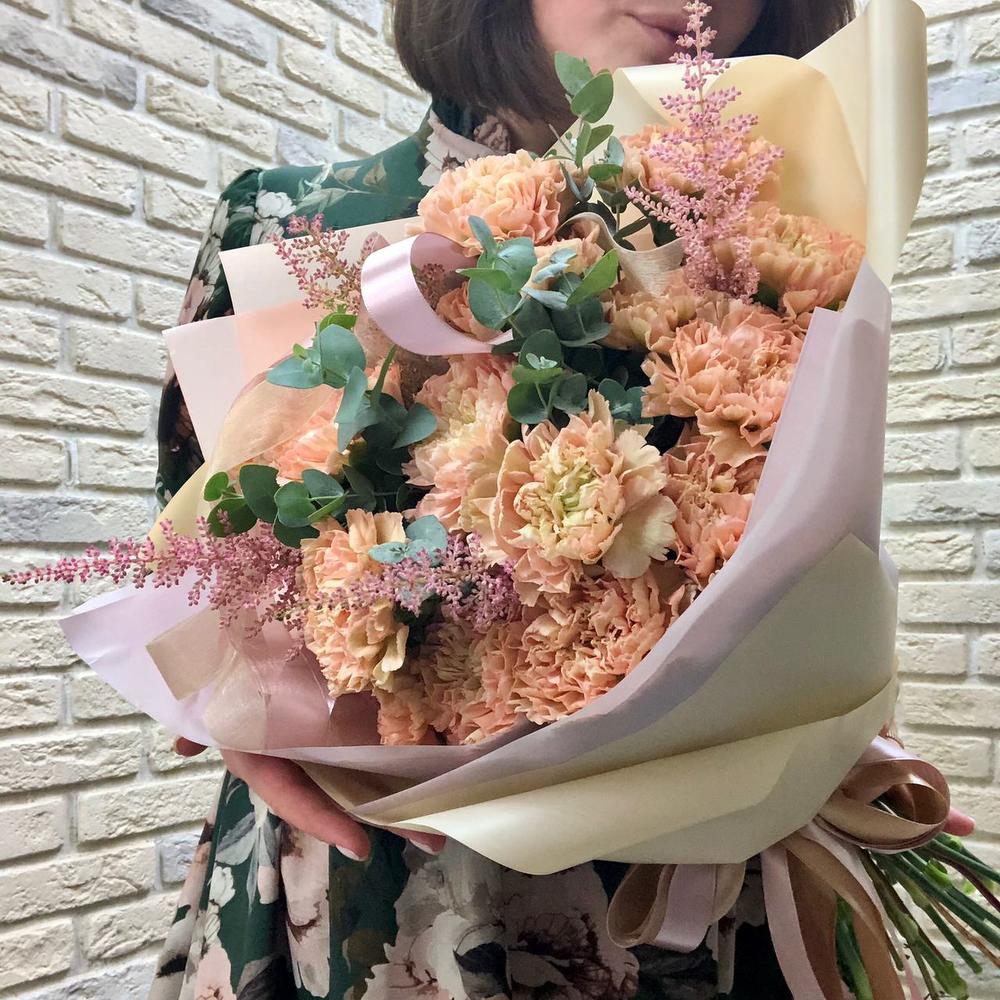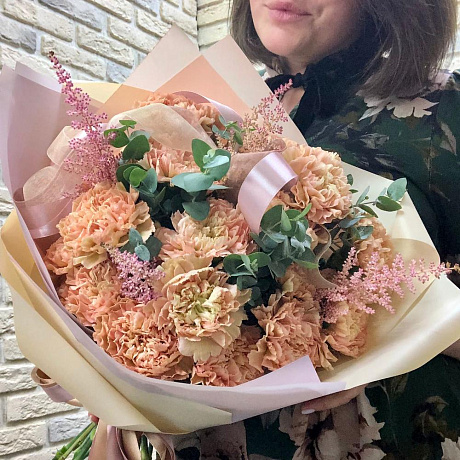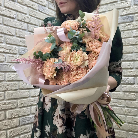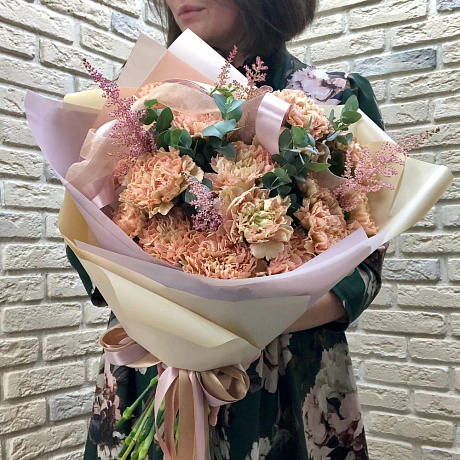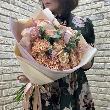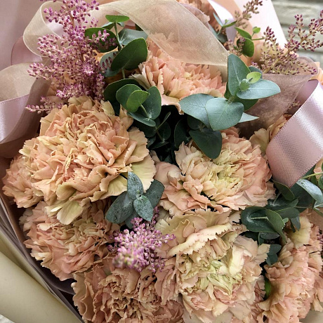Закажите Австорский букет с диантусом в основе с доставкой в Москве и МО.