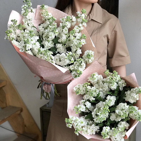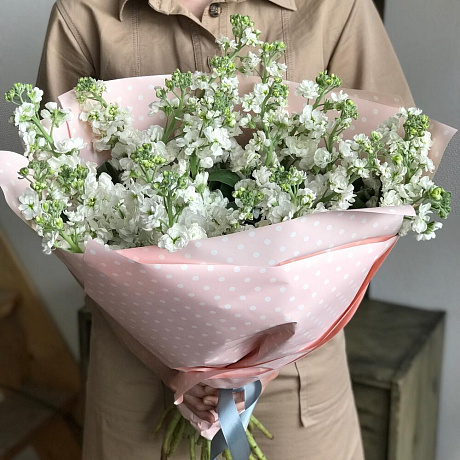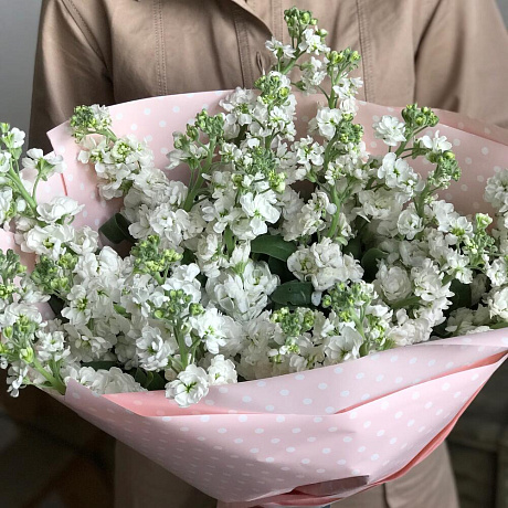 Белая маттиолла — отличный выбор для подарка! На сайте вы найдете красочные фотографии, которые помогут сделать выбор. Цена букета — 4300 руб.