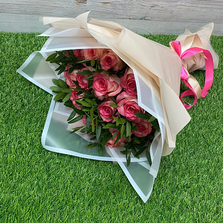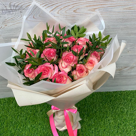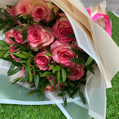 Закажите Букет из 19 роз Джумилия и зелени с доставкой в Москве и МО.