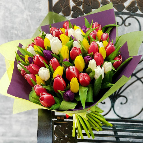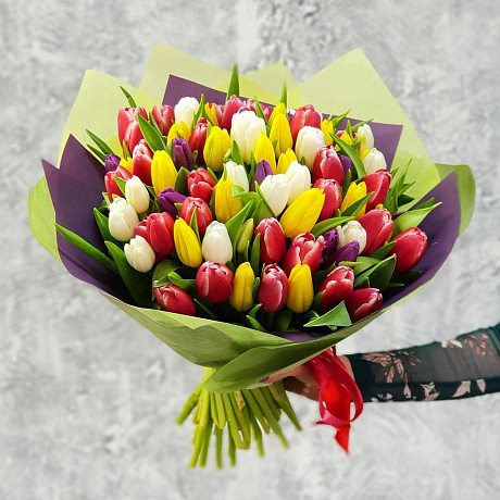 Закажите Букет из разноцветных тюльпанов в стильной упаковке с доставкой в Москве и МО.
