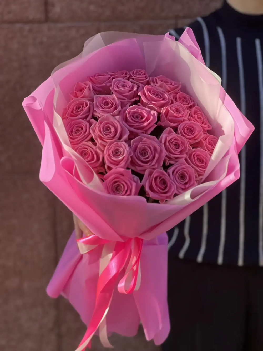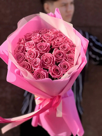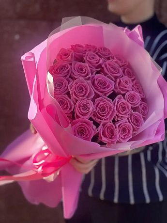 На фото - Букет из роз сорта Аква. В составе данной композиции: Роза Аква 50 см Россия - 25 шт..