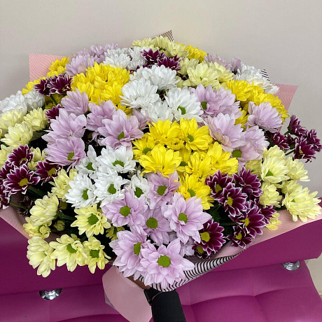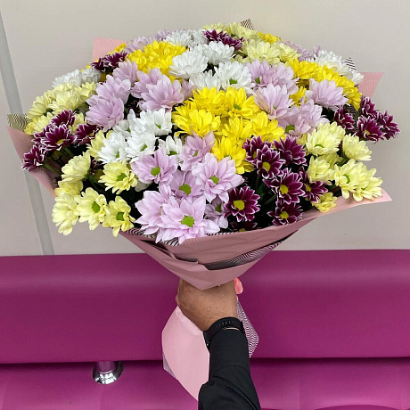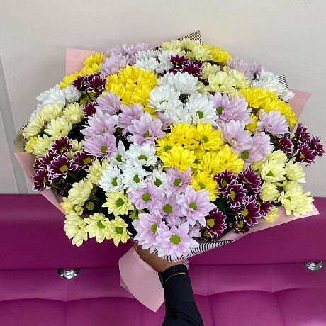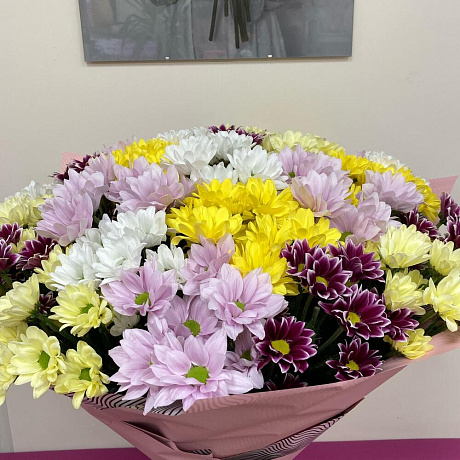 Закажите Букет из 25 хризантем "яркий микс" с доставкой в Москве и МО.