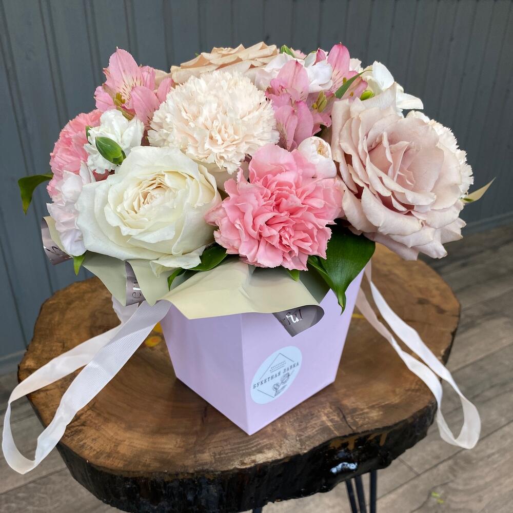 На фото - Цветы в коробке №909. В составе данной композиции: .