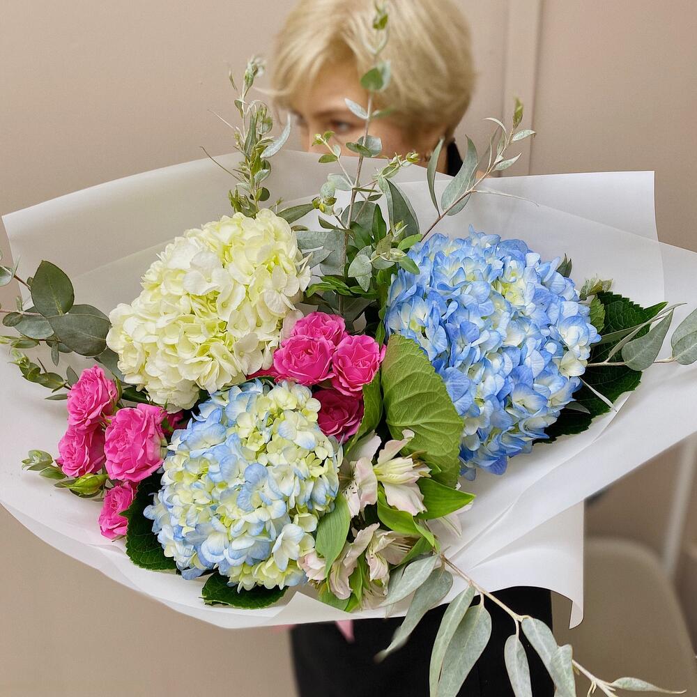 Гортензии в красках №161 — отличный выбор для подарка! На сайте вы найдете красочные фотографии, которые помогут сделать выбор. Цена букета — 3100 руб.