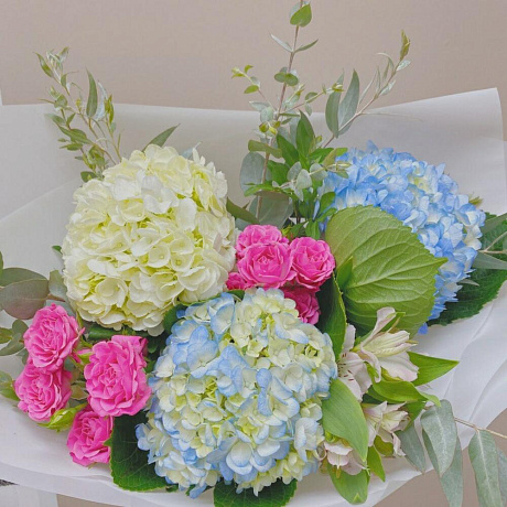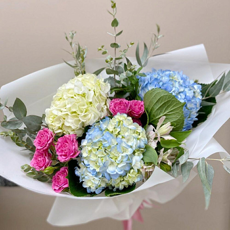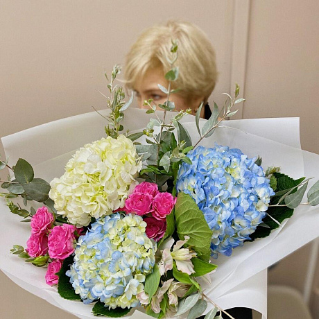Гортензии в красках №160 — отличный выбор для подарка! На сайте вы найдете красочные фотографии, которые помогут сделать выбор. Цена букета — 3050 руб.