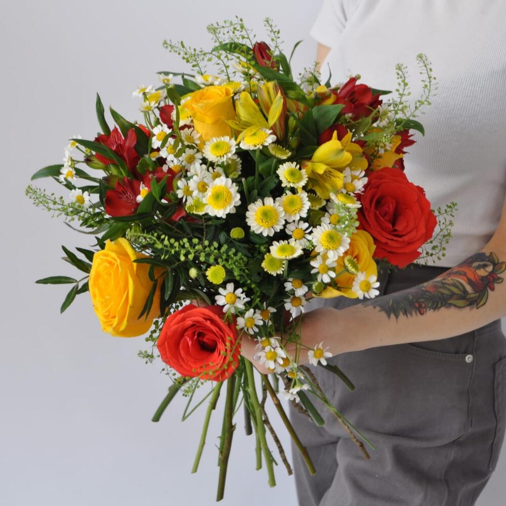 Букет цветов "Полевой" №166 — отличный выбор для подарка! На сайте вы найдете красочные фотографии, которые помогут сделать выбор. Цена букета — 3250 руб.