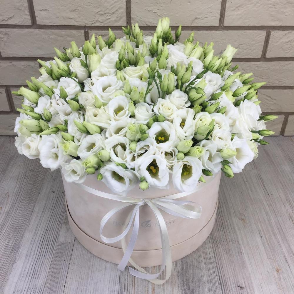 61 эустома в бархатной коробке — отличный выбор для подарка! На сайте вы найдете красочные фотографии, которые помогут сделать выбор. Цена букета — 14300 руб.