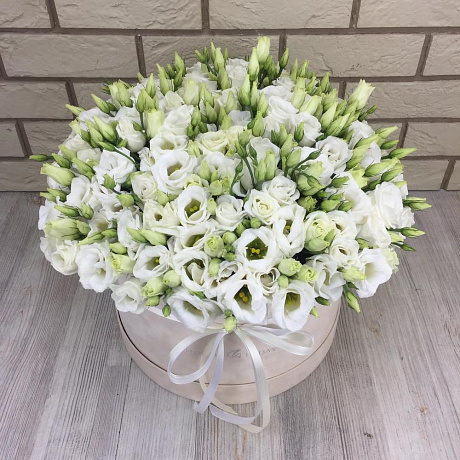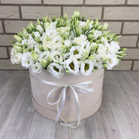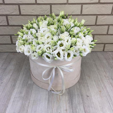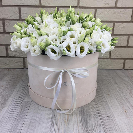 Закажите 61 эустома в бархатной коробке с доставкой в Москве и МО.