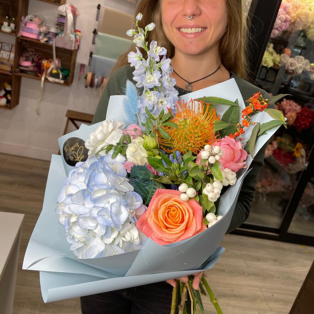 Букет цветов "Голубая лагуна" №178 — отличный выбор для подарка! На сайте вы найдете красочные фотографии, которые помогут сделать выбор. Цена букета — 4500 руб.