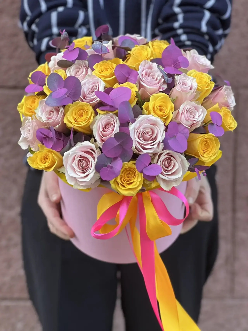 <p>На фото - Композиция цветов №191. В составе данной композиции: Роза 40 см - 51 шт., эвкалипт 0,2, шляпная коробка.</p> <p>На сайте "Доступная доставка цветов" Вы найдете большой выбор недорогих букетов, цветочных композиций для любого повода.</p> <p>У нас можно заказать Композиция цветов №191 с доставкой по Москве.</p>