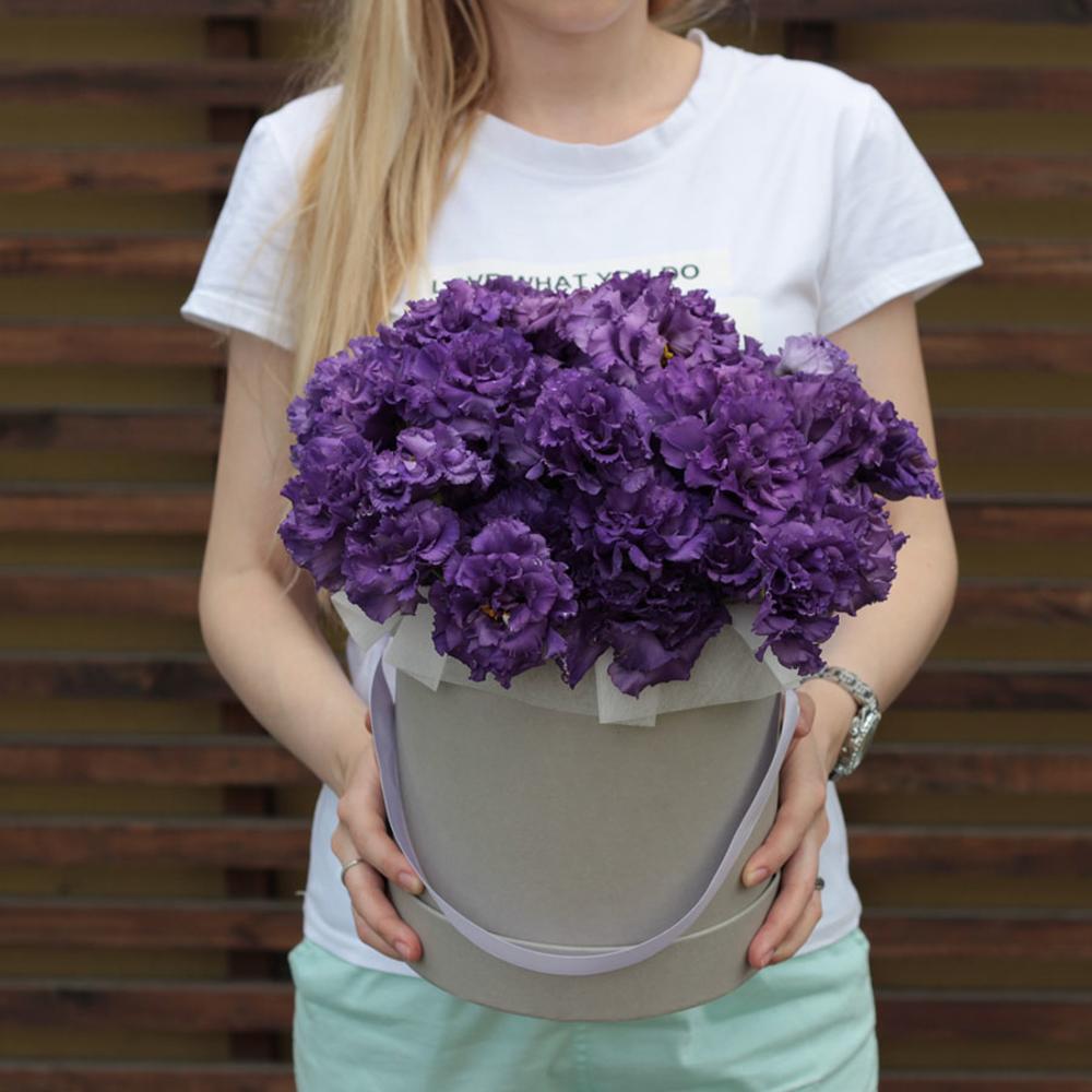 На фото - Коробка с цветами "Сумерки". В составе данной композиции: Эустома - 25 шт.; Коробка - 1 шт..