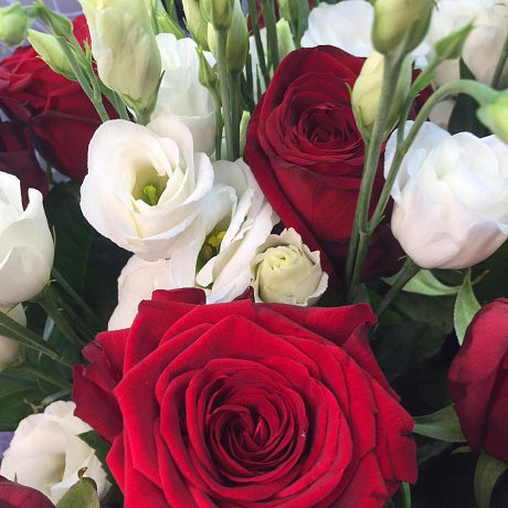 Красные розы и эустома — отличный выбор для подарка! На сайте вы найдете красочные фотографии, которые помогут сделать выбор. Цена букета — 17100 руб.