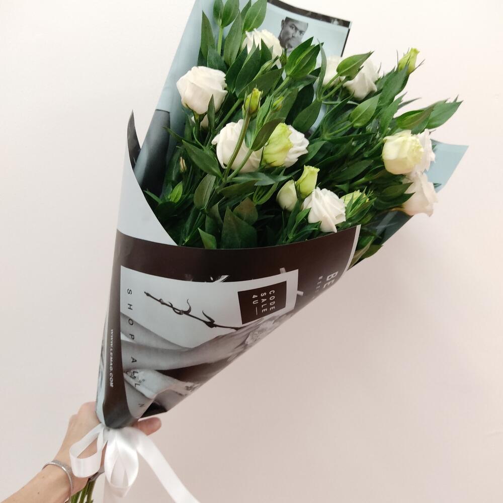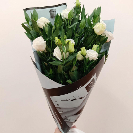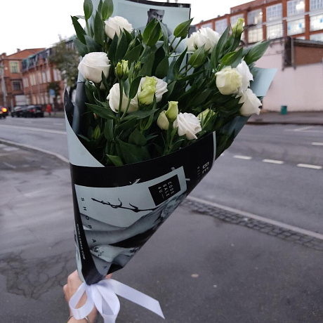 Монобукет, Эустома 9шт., в дизайнерской упаковке