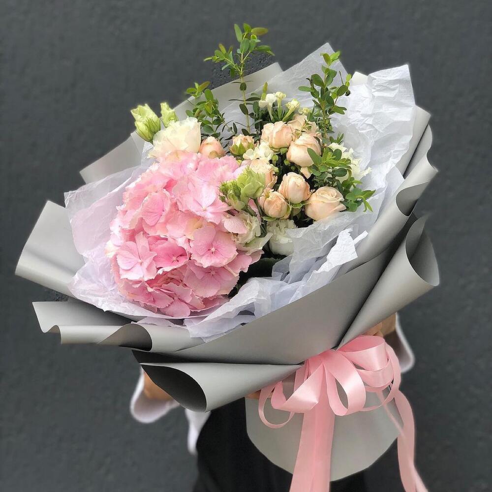 Закажите Сборный букет с гортензией №165 с доставкой в Москве и МО.
