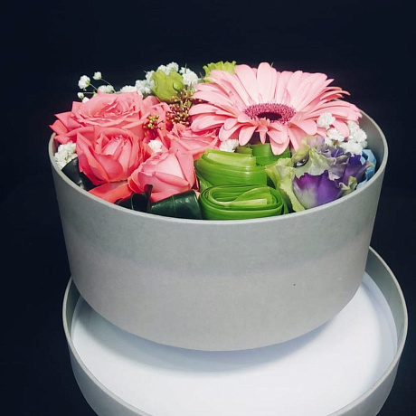 У нас можно заказать Шляпная коробка с цветами "Анжелика" с доставкой по Москве.