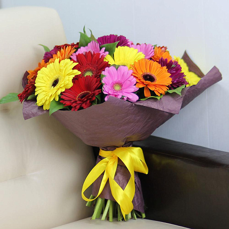 25 гербер микс в крафте — отличный выбор для подарка! На сайте вы найдете красочные фотографии, которые помогут сделать выбор. Цена букета — 7800 руб.