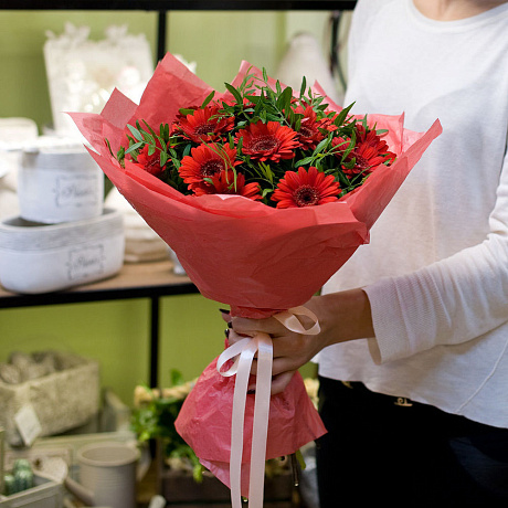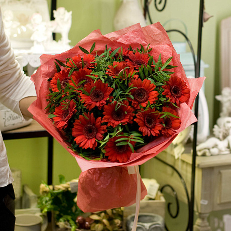 У нас можно заказать Букет цветов Красные герберки с доставкой по Москве.