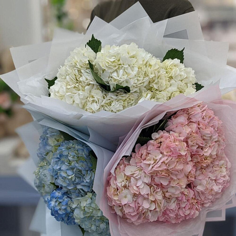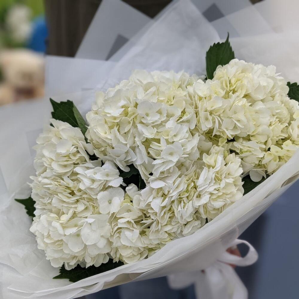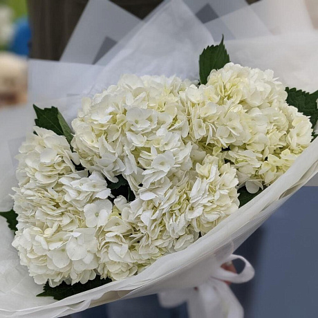 5 белых гортензий — отличный выбор для подарка! На сайте вы найдете красочные фотографии, которые помогут сделать выбор. Цена букета — 3500 руб.