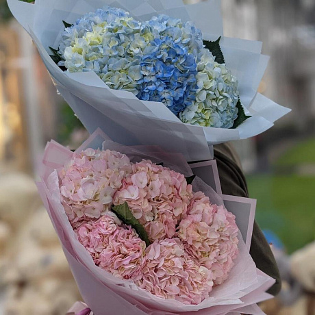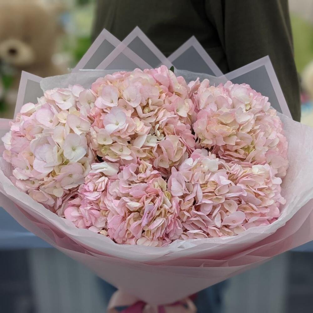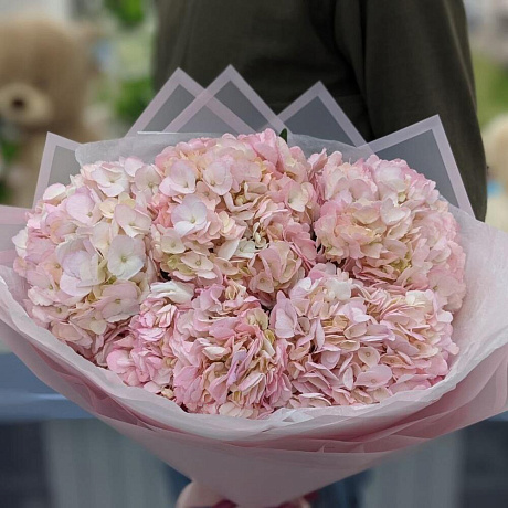 5 розовых гортензии — отличный выбор для подарка! На сайте вы найдете красочные фотографии, которые помогут сделать выбор. Цена букета — 3500 руб.
