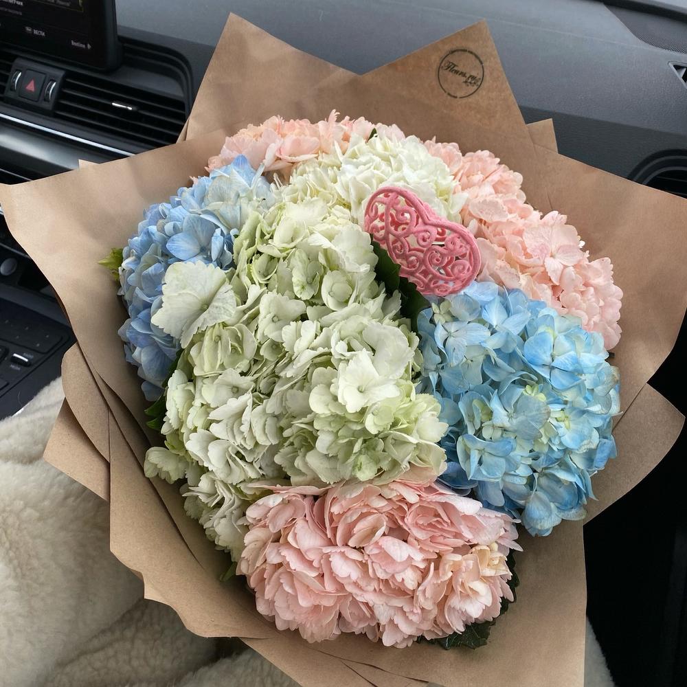 Состав: Гортензия - 9 шт.; декор сердце (по запросу) - 1 шт.