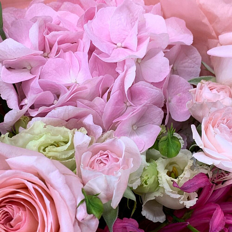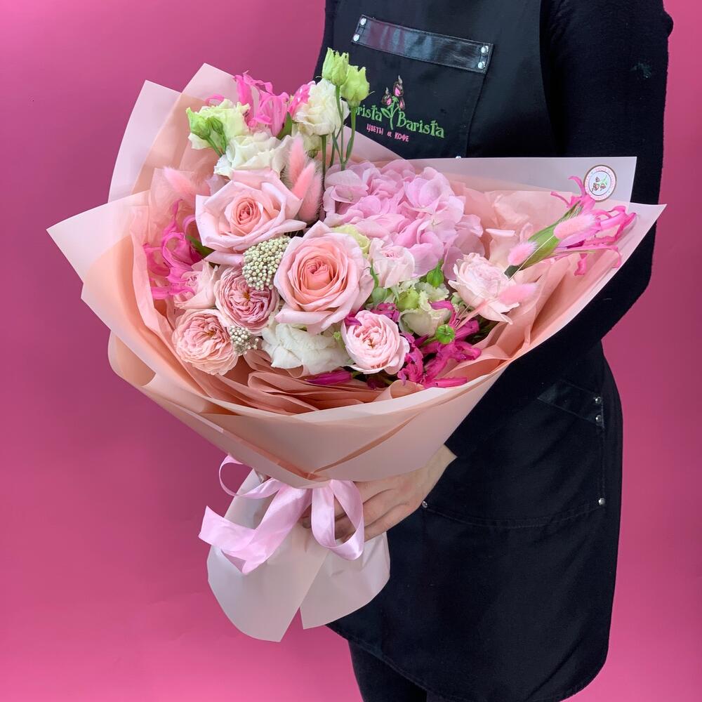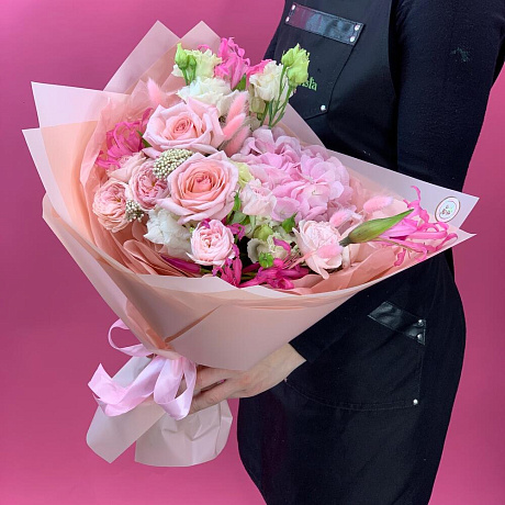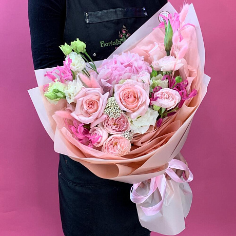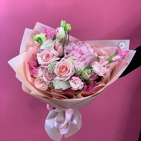 Закажите Нежный букет с Ароматными розами и гортензией с доставкой в Москве и МО.
