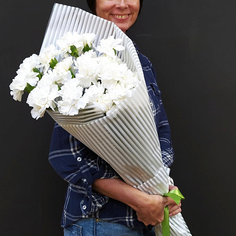 Белые гвоздики №160 — отличный выбор для подарка! На сайте вы найдете красочные фотографии, которые помогут сделать выбор. Цена букета — 3200 руб.