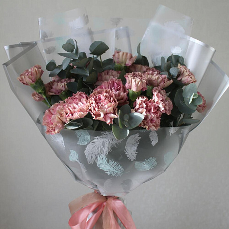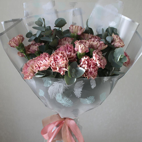 Закажите Букет из 17 кружевных гвоздик и ароматного эвкалипта Гвоздики Гвоздика с доставкой в Москве и МО.