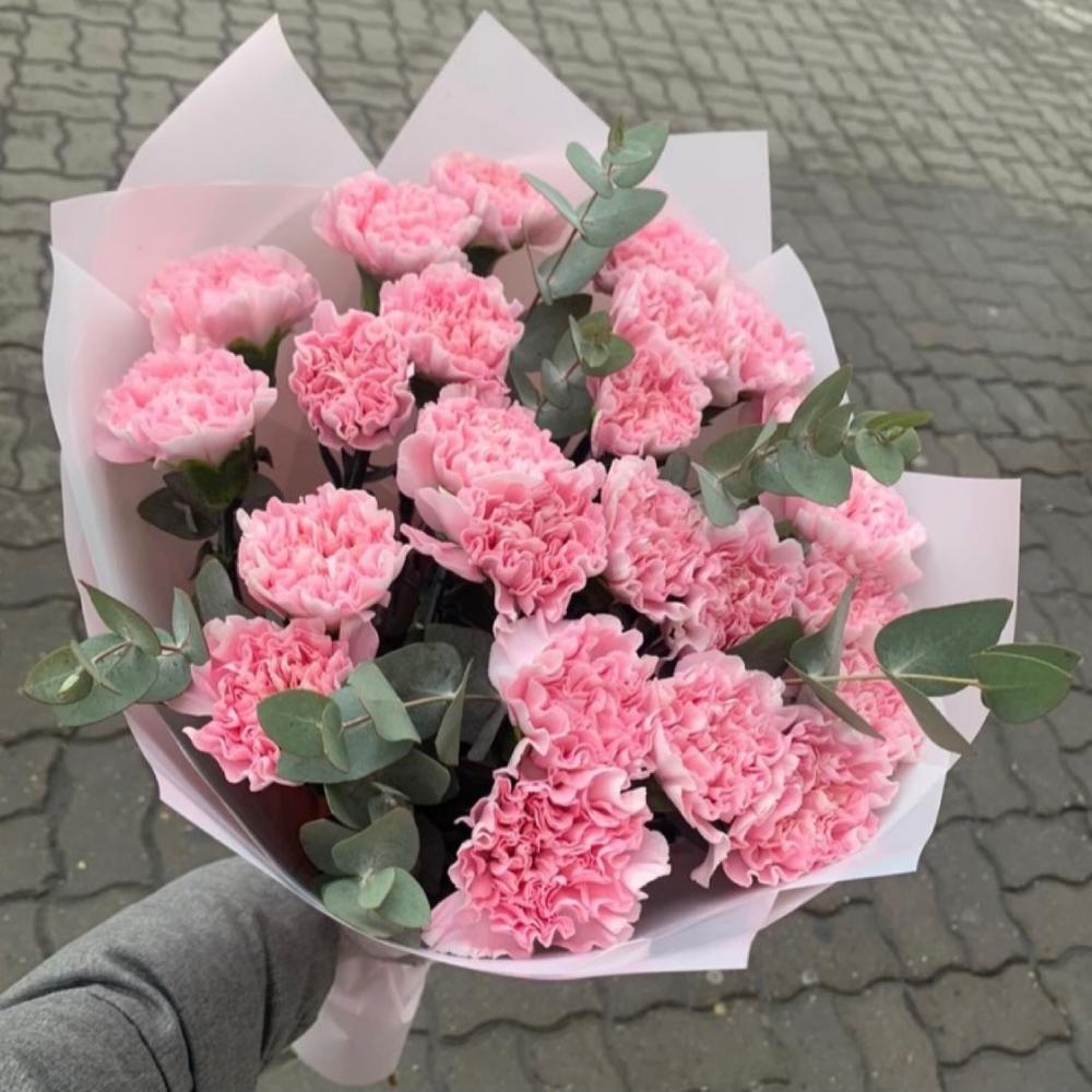 Букет из Гвоздик и эвкалипта №161 — отличный выбор для подарка! На сайте вы найдете красочные фотографии, которые помогут сделать выбор. Цена букета — 3300 руб.
