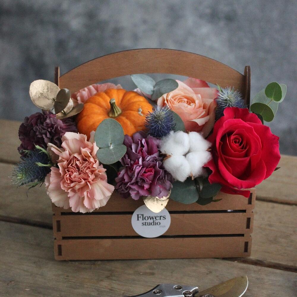 Закажите Цветочный ящик с тыквой с доставкой в Москве и МО.