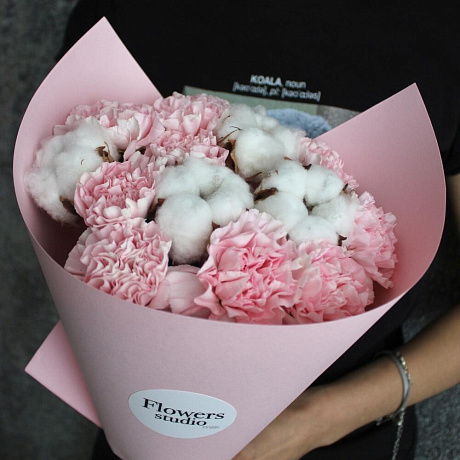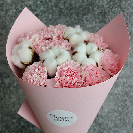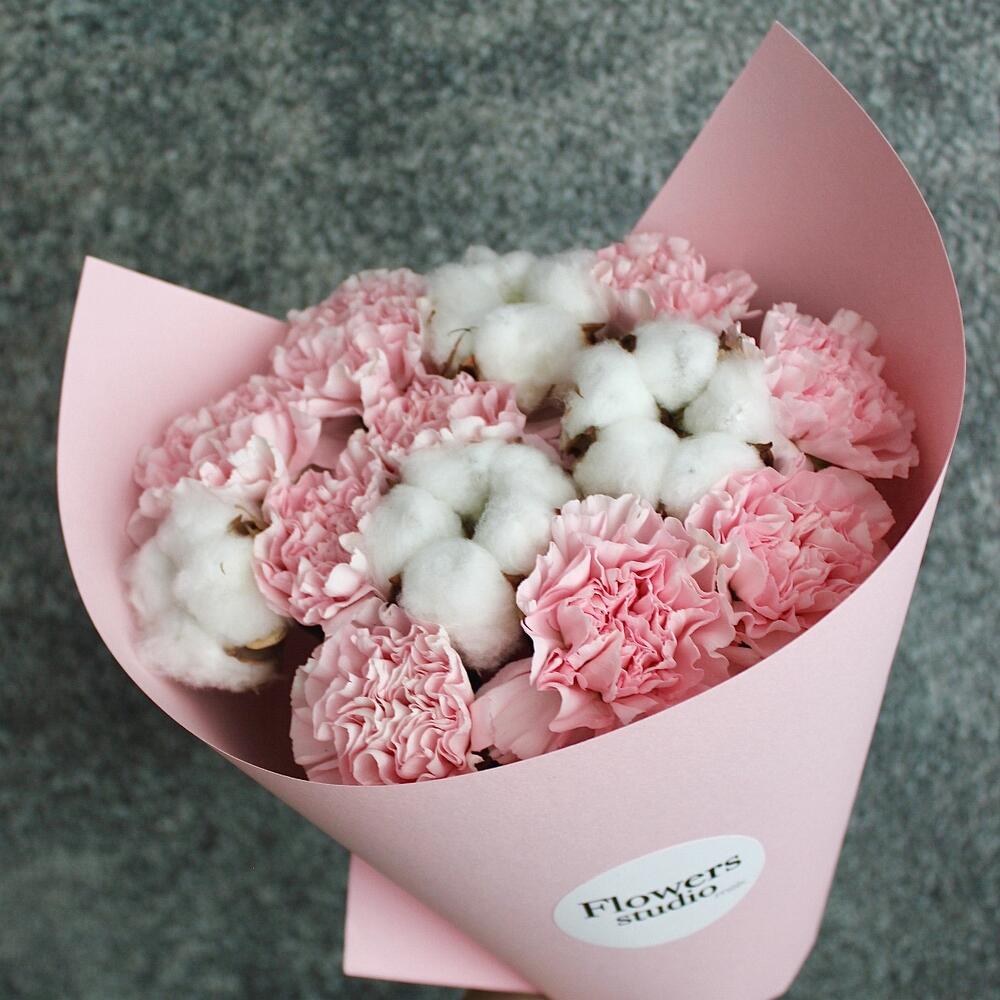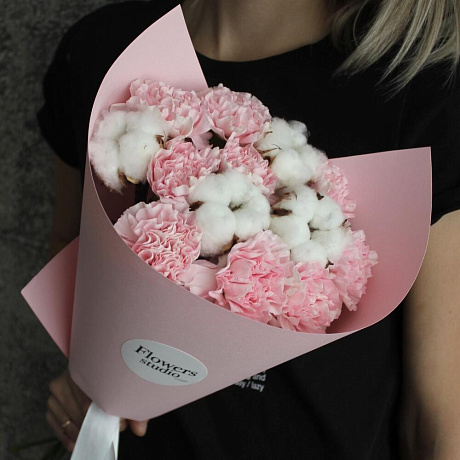 Закажите Розовый букет с хлопком №160 с доставкой в Москве и МО.