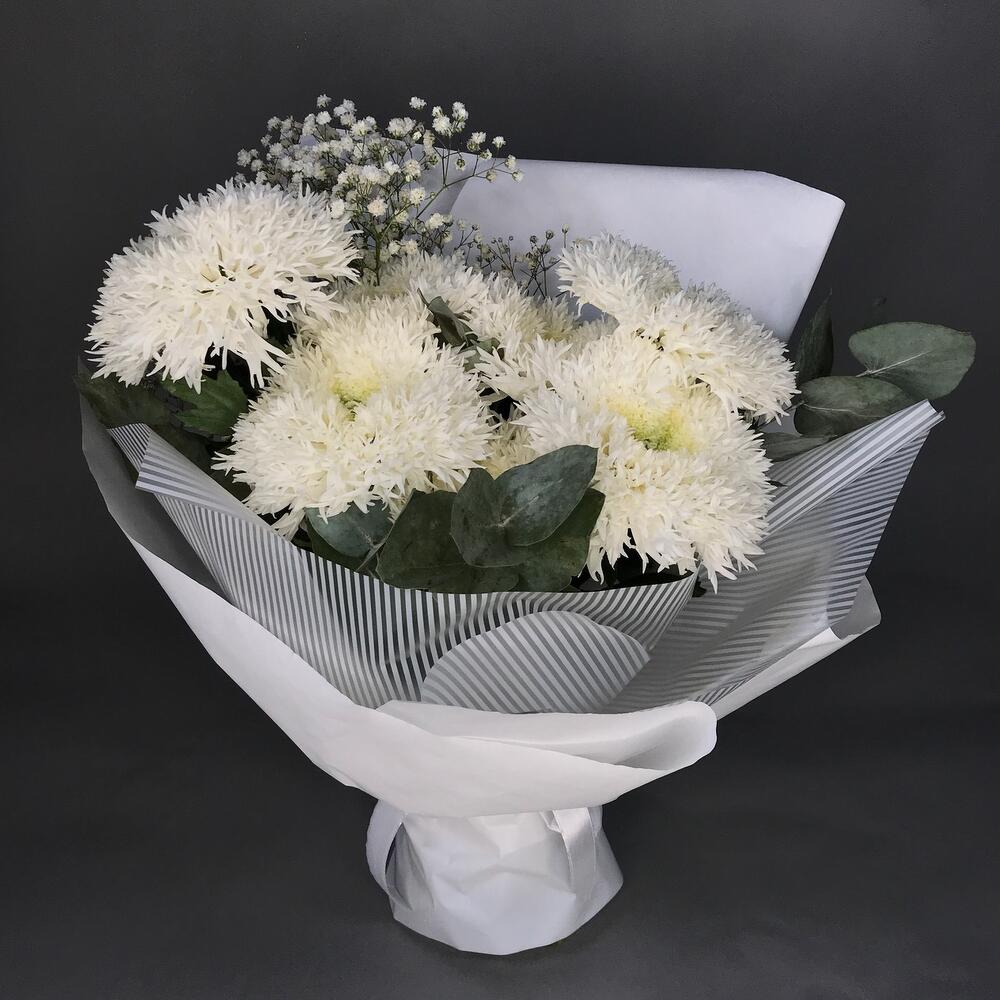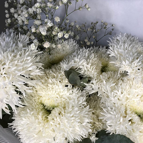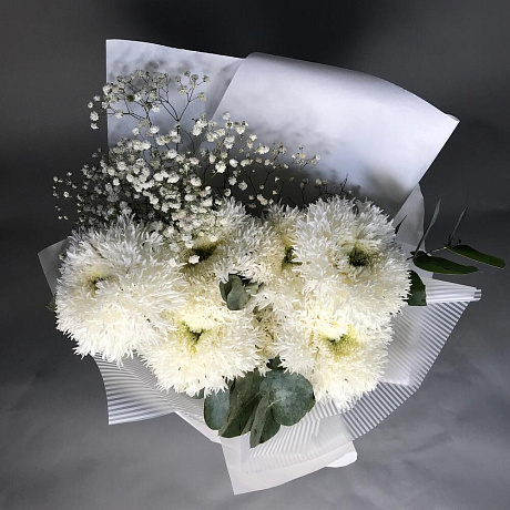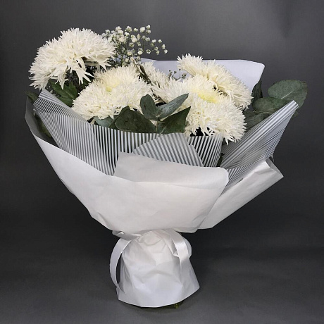 Белые сортовые хризантемы №2 — отличный выбор для подарка! На сайте вы найдете красочные фотографии, которые помогут сделать выбор. Цена букета — 3600 руб.