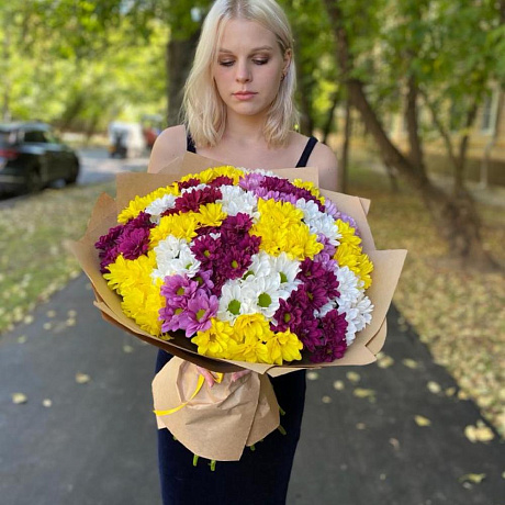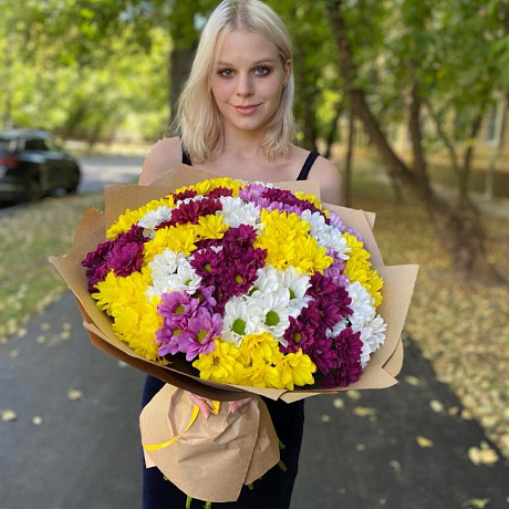 Закажите Букет 23 Очень свежие хризантемы кустовые микс «Любимая» с доставкой в Москве и МО.