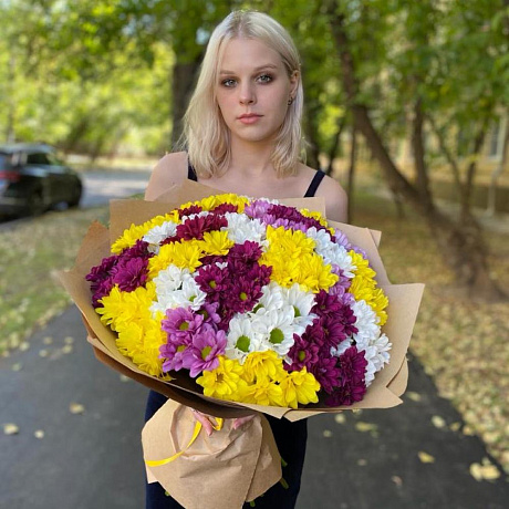 Букет 23 Очень свежие хризантемы кустовые микс «Любимая»