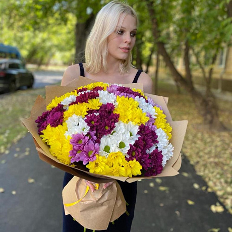 Букет 23 Очень свежие хризантемы кустовые микс «Любимая» — отличный выбор для подарка! На сайте вы найдете красочные фотографии, которые помогут сделать выбор. Цена букета — 5500 руб.