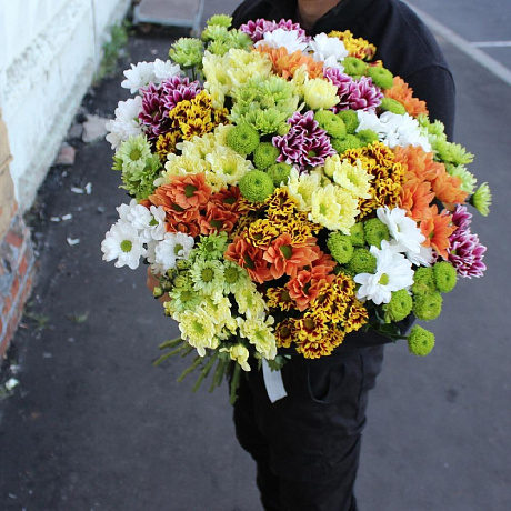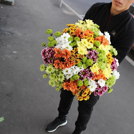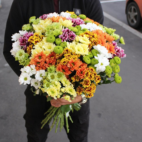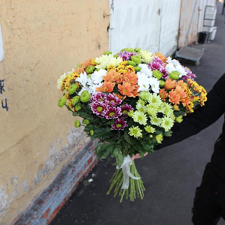 Закажите Букет из 35 разноцветных хризантем с доставкой в Москве и МО.