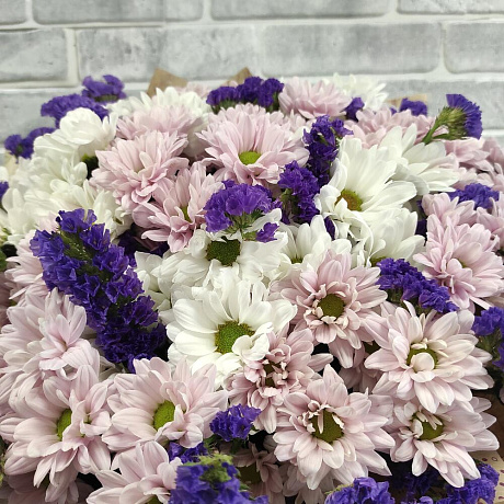 Закажите Букет из хризантем и статицы с доставкой в Москве и МО.