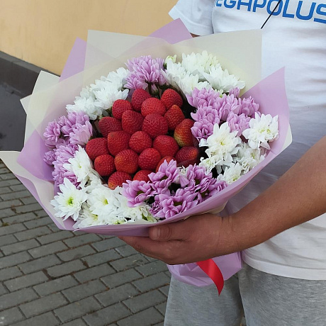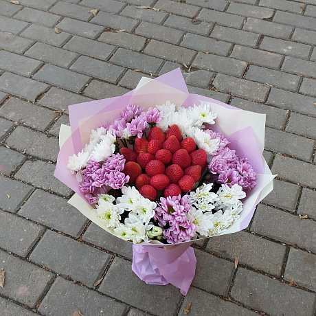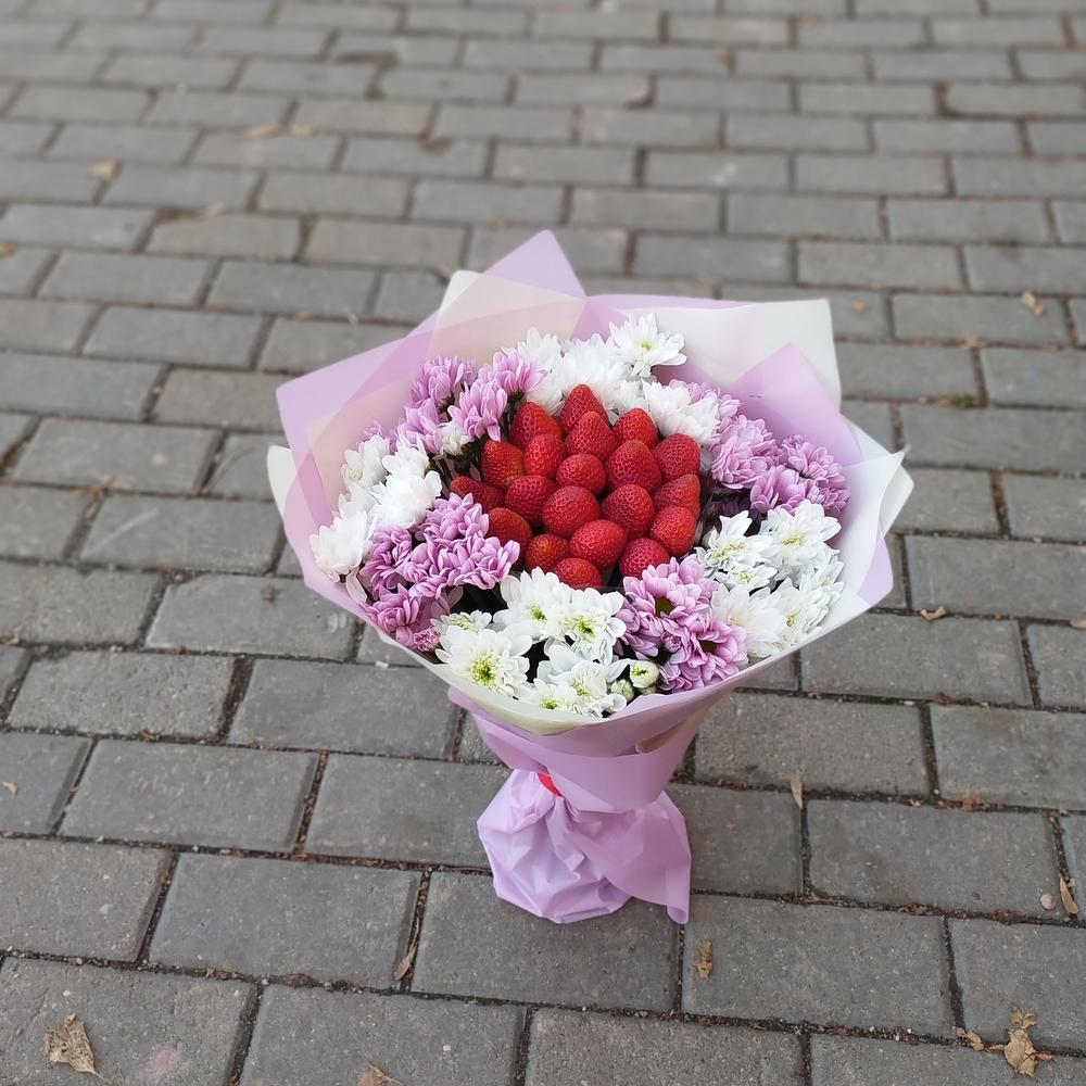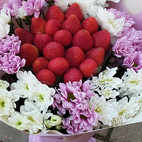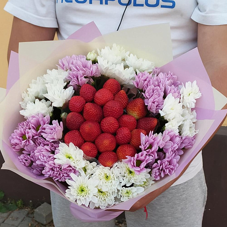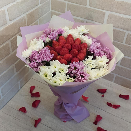 Закажите Букет из клубники с хризантемами с доставкой в Москве и МО.