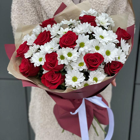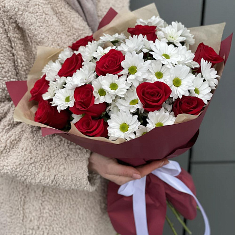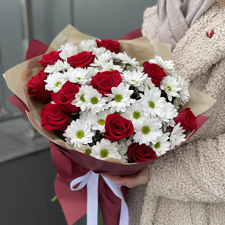 Закажите Букет Спеши любить из роз и хризантемы с доставкой в Москве и МО.