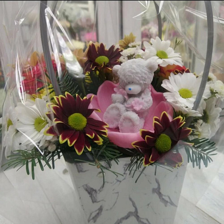 <p>На фото - Букет цветов "Сумка с мылом". В составе данной композиции: Хризантема кустовая - 4 шт.; Роза - 3 шт.; Зелень - 7 шт.; Альстромерия - 1 шт.; Эустома - 1 шт.; Мыло ручной работы - 1 шт.; Оазис - 1 шт.; Сумка - 1 шт.; Прозрачная пленка - 1 шт..</p> <p>На сайте "Доступная доставка цветов" Вы найдете большой выбор недорогих букетов, цветочных композиций для любого повода.</p> <p>У нас можно заказать Букет цветов "Сумка с мылом" с доставкой по Москве.</p>