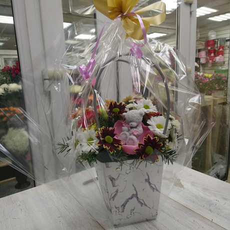 У нас можно заказать Букет цветов "Сумка с мылом" с доставкой по Москве.