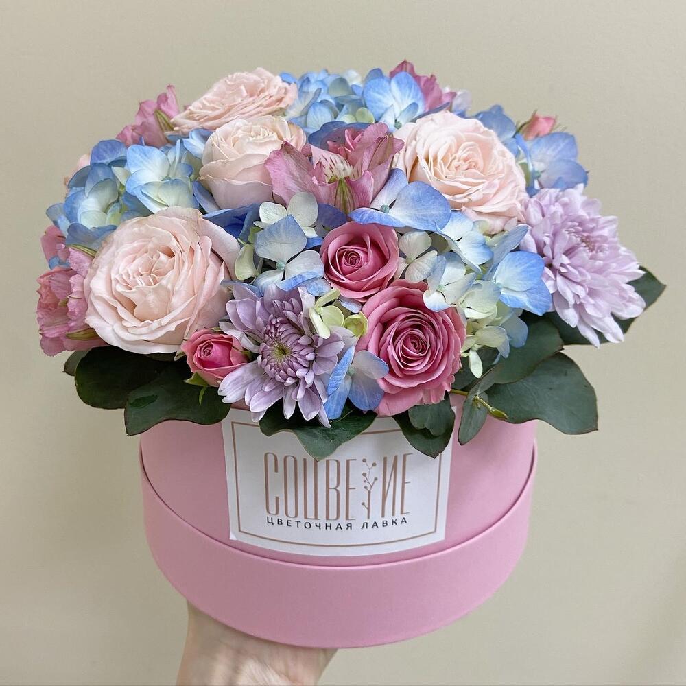 <p>На фото - Цветы в коробке №298. В составе данной композиции: Гортензия - 1 шт.; Роза кустовая - 3 шт.; хризантемы кустовые - 2 шт..</p> <p>На сайте "Доступная доставка цветов" Вы найдете большой выбор недорогих букетов, цветочных композиций для любого повода.</p> <p>У нас можно заказать Цветы в коробке №298 с доставкой по Москве.</p>