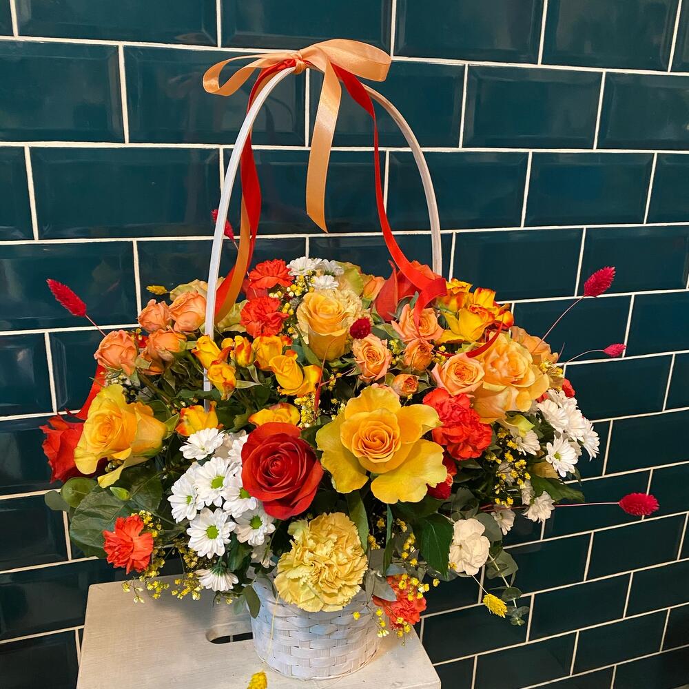 Закажите Яркая Корзинка с хризантемами с доставкой в Москве и МО.