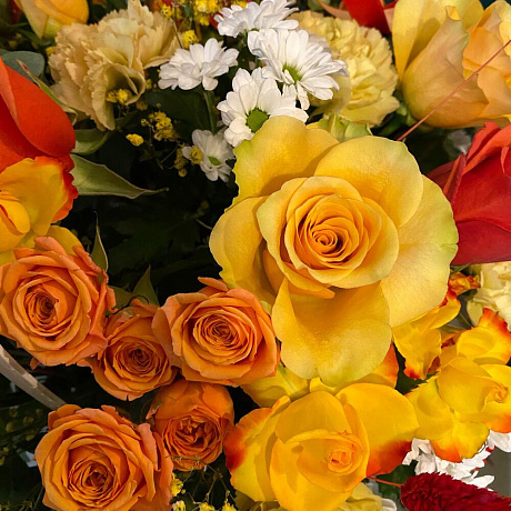 Яркая Корзинка с хризантемами — отличный выбор для подарка! На сайте вы найдете красочные фотографии, которые помогут сделать выбор. Цена букета — 5800 руб.