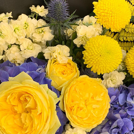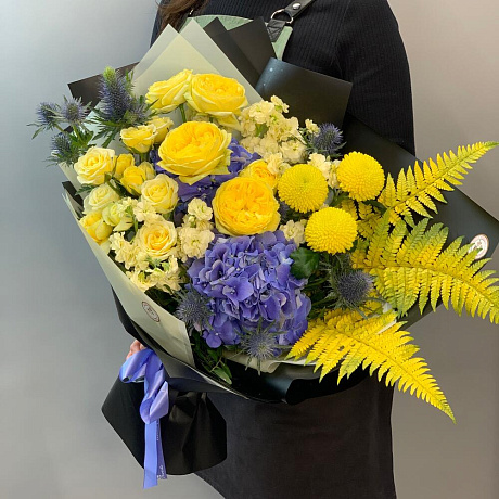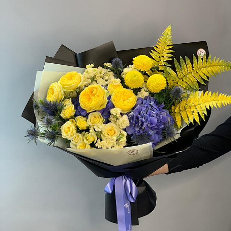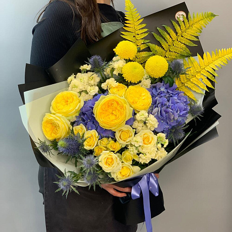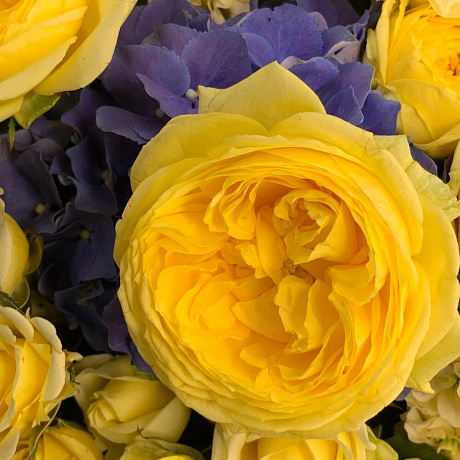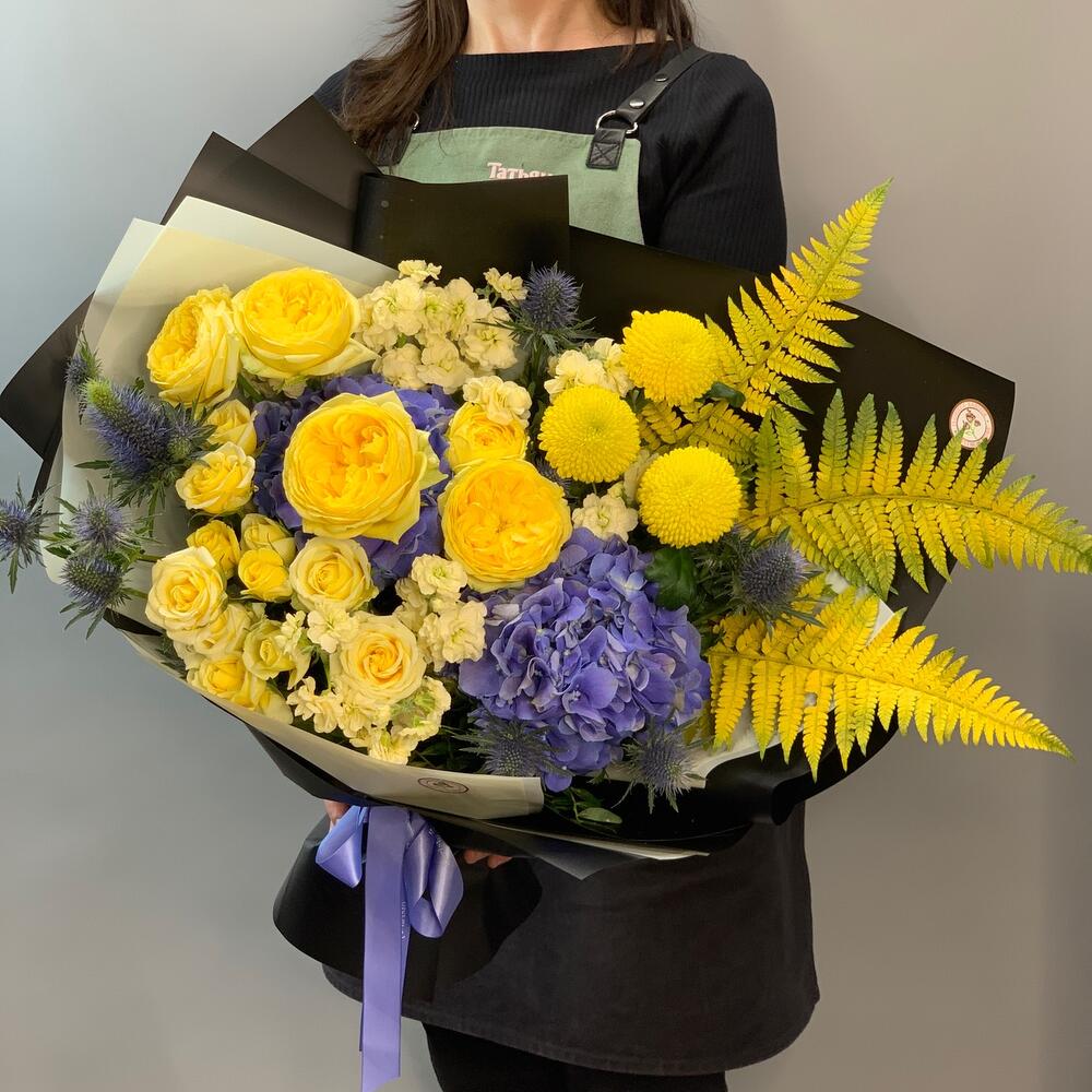 Закажите Яркий букет с пионовидной розой и гортензиями с доставкой в Москве и МО.