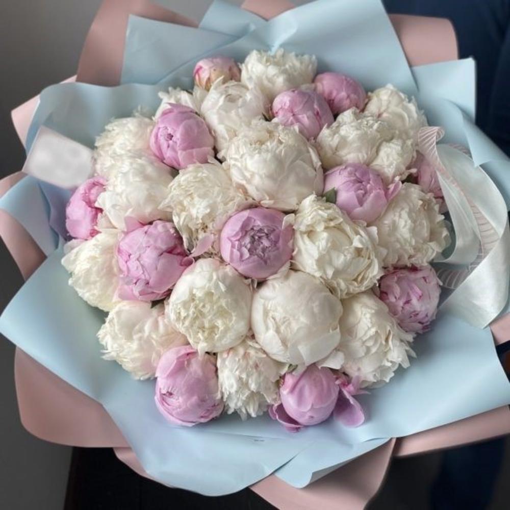 Нежные пионы №163 — отличный выбор для подарка! На сайте вы найдете красочные фотографии, которые помогут сделать выбор. Цена букета — 25100 руб.