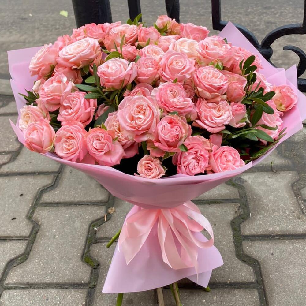 Закажите Букет из 15 кустовых розовых роз №162 с доставкой в Москве и МО.