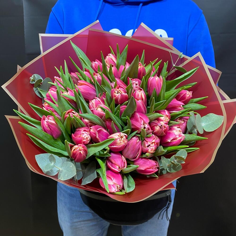 51 пионовидный тюльпан №162 — отличный выбор для подарка! На сайте вы найдете красочные фотографии, которые помогут сделать выбор. Цена букета — 7800 руб.