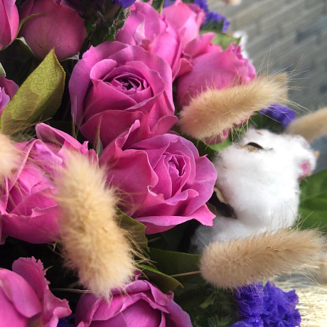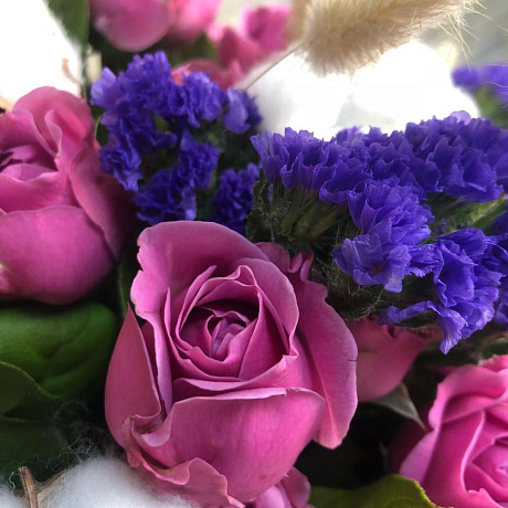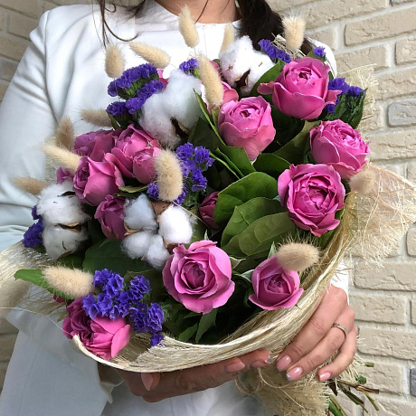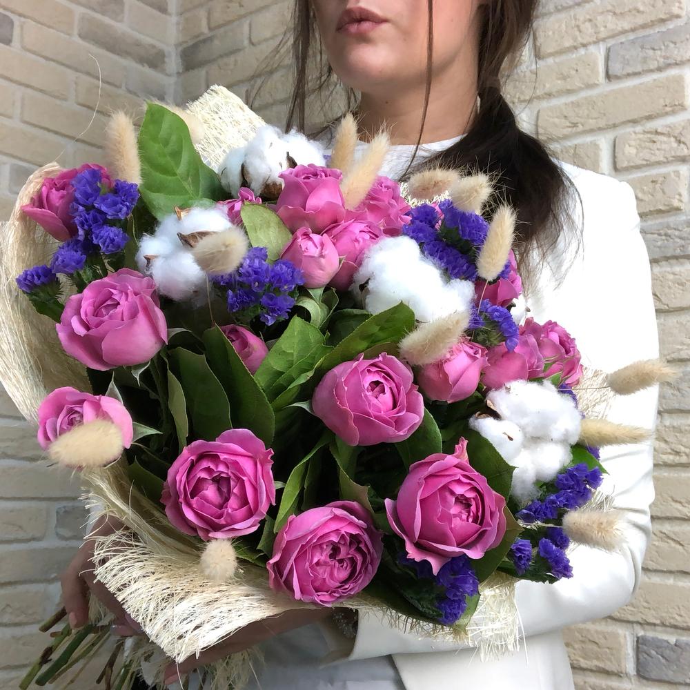 Закажите Авторский букет с розами и хлопком с доставкой в Москве и МО.